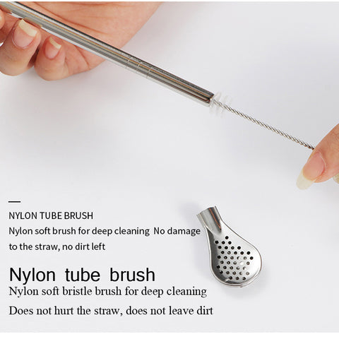 🥄【High-quality Material】 Straw Spoon is Made of High-quality Stainless Steel Material, Safe and Healthy, Durable . The Brush is Soft and Easy to Clean.