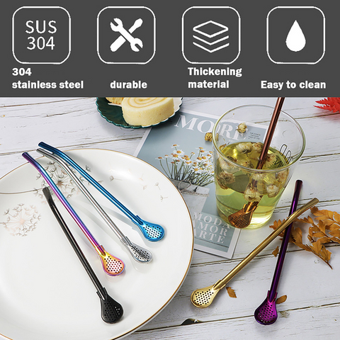 🥄【Perfect Suit】 Stainless Steel Straw Spoons of Different Colors with Filter , with Cleaning Brushes. Different Colors can be Used to Distinguish Different People and Can Meet the Different Needs of a Family. Healthier and Hygienic .