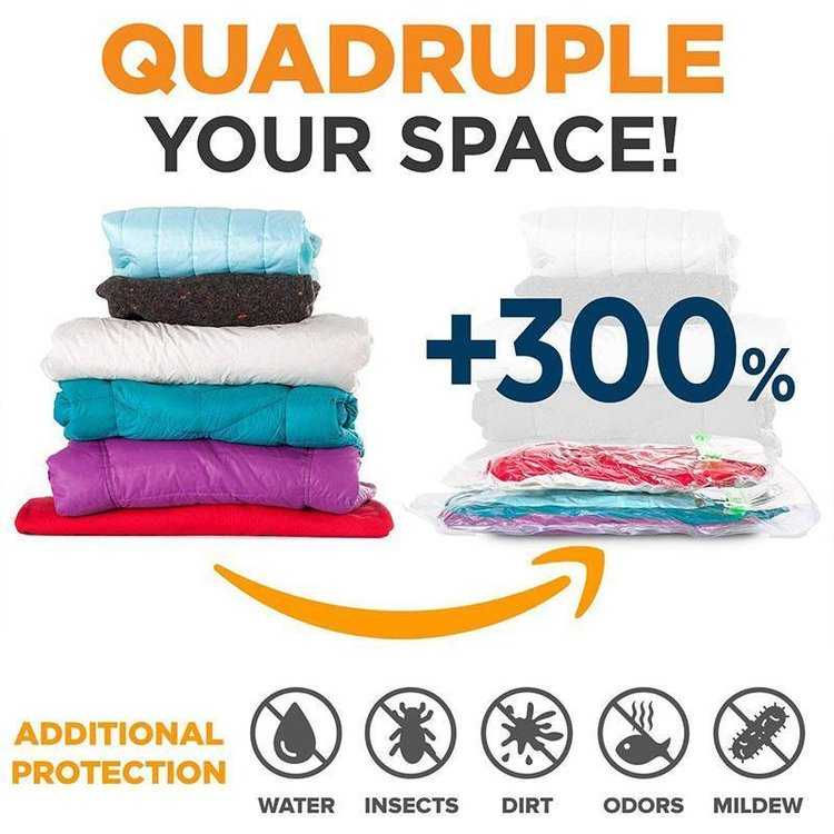 Unlike other bags, you would not care anymore about additional equipment for vacuuming! Just Press - excess air will exit from valves and never return back. Mintiml™ Press It are not only for travel. It can be used for storage of clothing, towels, sheets, and pillowcases at home, or in your car or wherever you want.