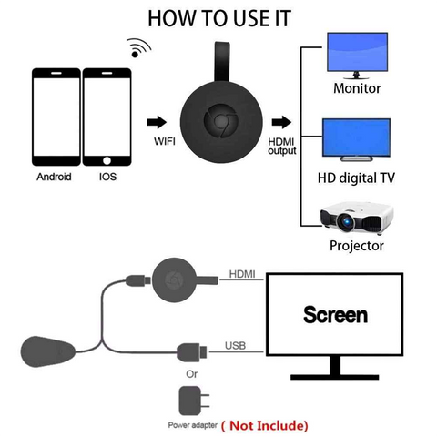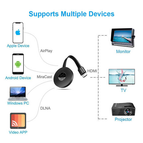 With 1080P support, you can connect your PC, smartphone or iPad to your TV or projector and mirror whatever you see on your mobile device's display to your HDTV or projector to create your own exclusive theater and enjoy a different kind of audio-visual feast