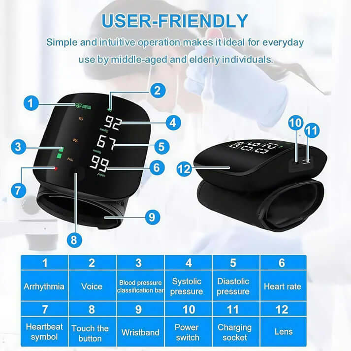 Features a bright LED display and intuitive touch controls, making blood pressure and heart rate data clear at a glance. Easy for everyone, including the elderly, to operate and track health metrics anytime, anywhere.