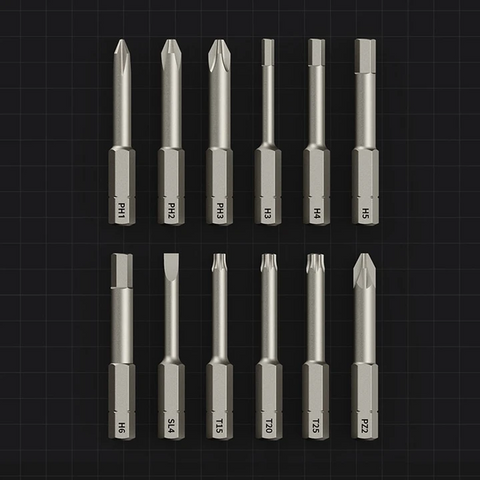 Comes with 12 50 mm S2 long steel bits: The 12 pieces of long bits are made of S2 alloy steel, with hardness up to 60HRC *. They are resilient, durable, and coated with environmentally-friendly nickel, which doesn't impair the screw-fit and enhances rust resistance.