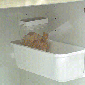It can be pasted wherever you need it to keep all your stuff presentable and organized. For example, storing spatulas or seasonings on the side of the counter, odds and ends under the sink.