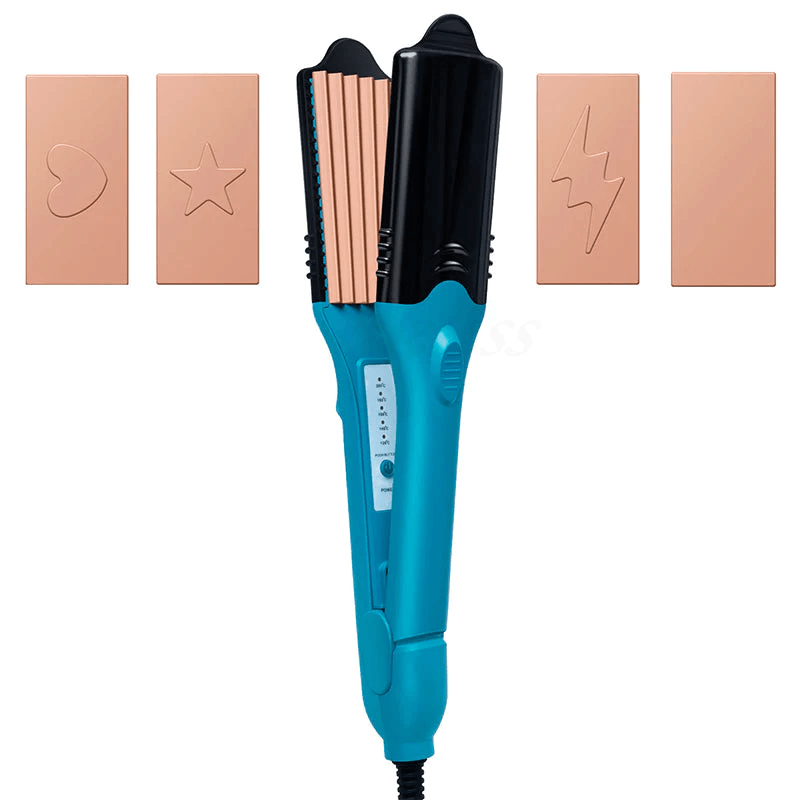 • WHAT'S INCLUDED: First of its kind 3D hair imprinting iron, 5 different plates including 3 shape plates (star, lightning bolt, heart), crimping plates, flat iron plates, and a heat protective glove.