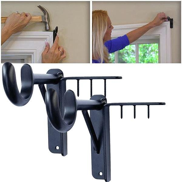 Easy Installation Single Curtain Rod Bracket works with window frame or wooden door frame: Place the brackets on the top of the frame, then use a hammer tap them into the frame. No need for drilling or adjusting. Help you save your time!