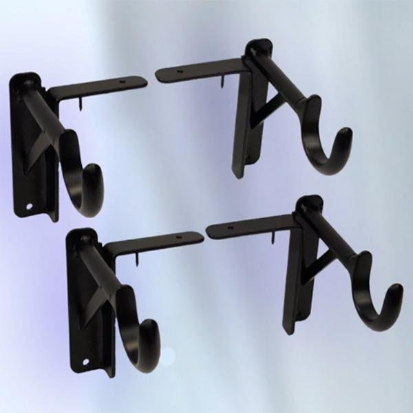 With a set of these brackets, it appears that you'll be able to hang a set of curtains without using a screwdriver, a level, a measuring tape or any other tool besides a hammer. Each set of these black brackets is expected to fit on any square or rectangular window frame and hold up any set of curtains that weighs 10 pounds or less.