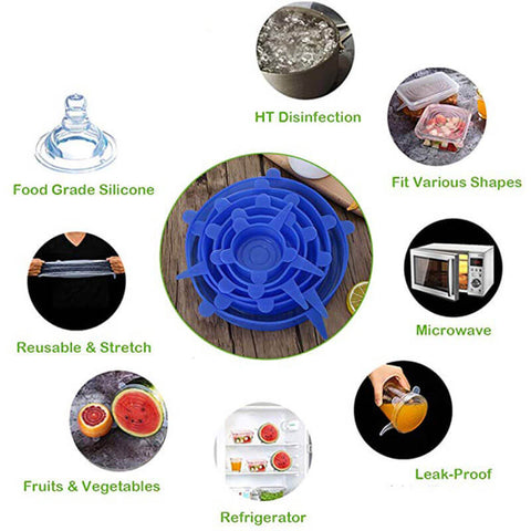 - The reusable preservation cover is made of food-grade silica gel, safe and healthy, recyclable and reusable. Providing a natural seal on food to keep it fresh longer.